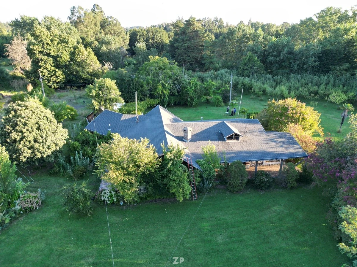 ¡Increíble oportunidad de adquirir una parcela de 1 hectárea con una espectacular casa de 420 mt construidos! Este maravilloso inmueble cuenta con un gran living comedor amoblado y equipado, bar, terminaciones en madera nativa en todos sus rincones, amplia cocina amoblada y equipada, 5 dormitorios, 5 baños amoblados (incluyendo uno con ducha sensorial), sala de juegos en mansarda, más de 80 árboles frutales en su hermoso jardín, amplio quincho en espacio contiguo y terraza.