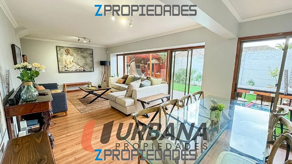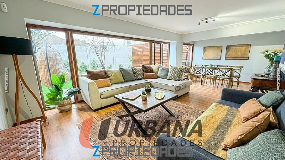 El área exterior es simplemente encantadora, con un patio que incluye quincho y terraza para disfrutar de actividades al aire libre, además de dos estacionamientos interiores para tu conveniencia. La propiedad está en excelente estado de mantenimiento, con piso flotante en todas sus áreas que aporta calidez y elegancia a cada ambiente.