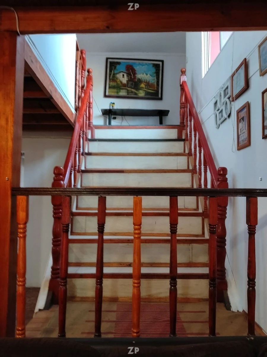 En su interior dispone de 5 dormitorios, 2 baños, living comedor, cocina, una sala destinada para oficina o estudio, y una sala adicional que puede utilizarse como pieza de implementos, bodega interior o espacio multiuso. Además, cuenta con una escalera amplia, cielos con detalles en madera, buena distribución y 2 balcones en el segundo piso.