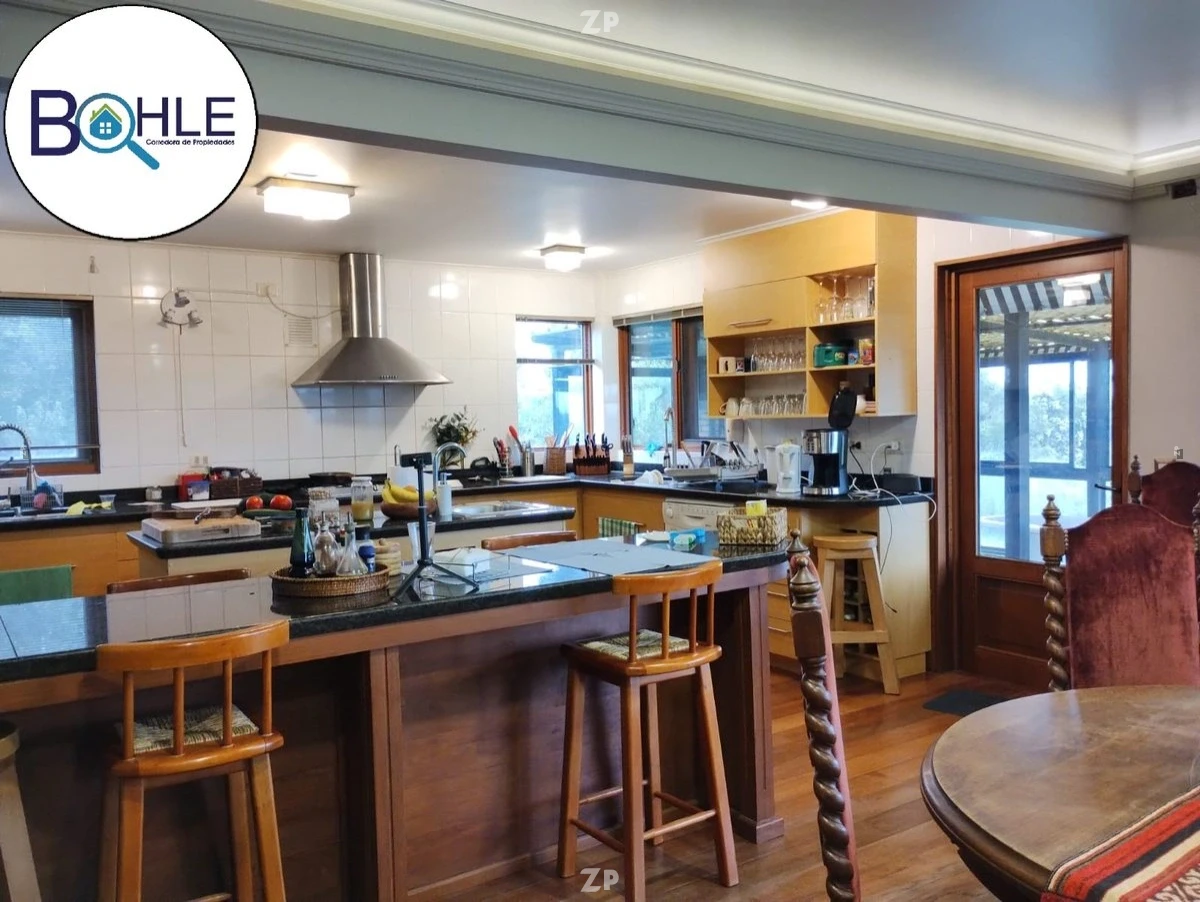 La casa tiene 5 dormitorios, dos en suite y 5 baños, Walking closet, amplios pasillos, chimenea, cocina americana amplia, corredores, terraza semi techada, bodega amplia, panel solar, oficina, lavadero, sala de herramientas, energía eólica, APR rural, luz subterránea.