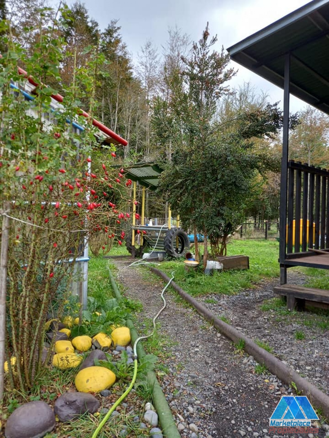 El terreno cuenta con luz, agua APR, además agua de regadío, pequeño bosque con arboles nativos, invernadero construido con policarbonato, galpón, gallinero y leñera.