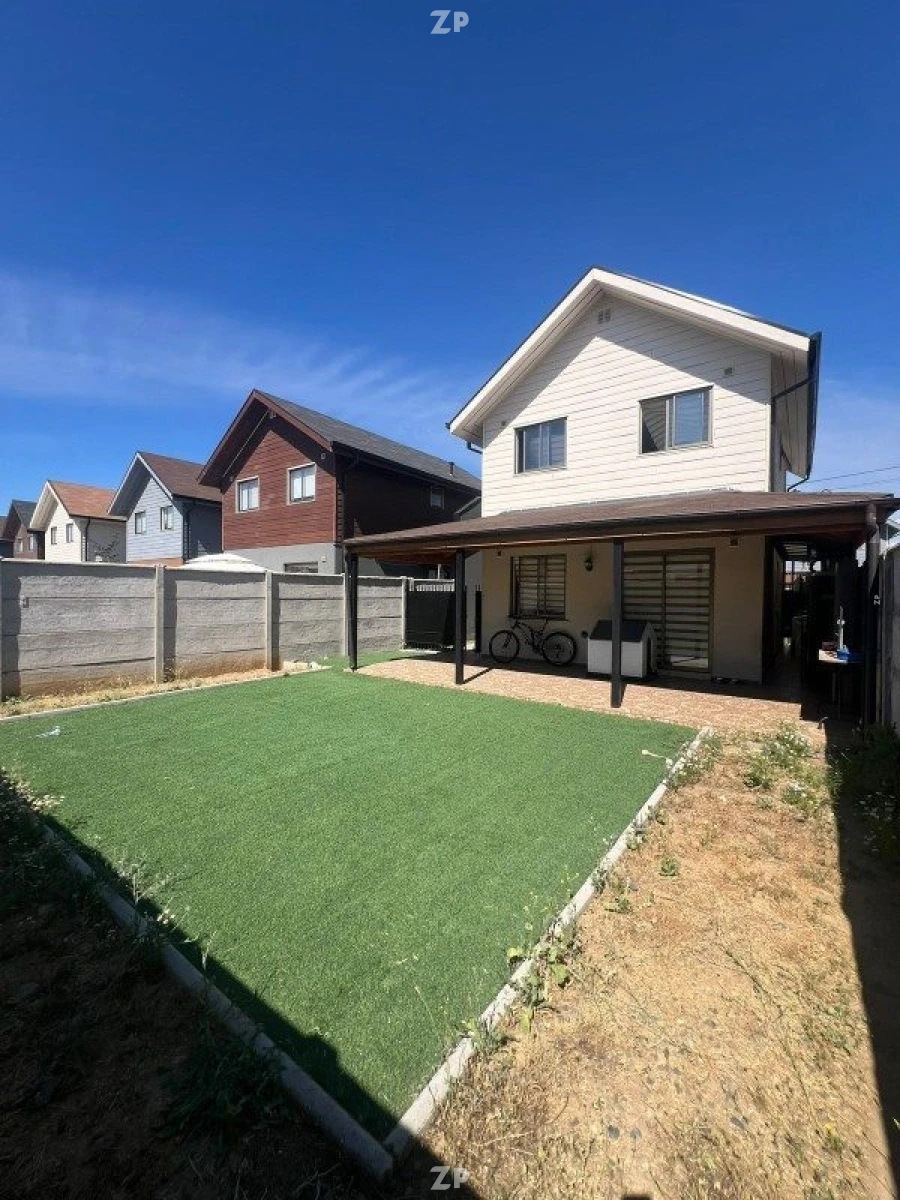Además la casa cuenta con pasto en antejardín con riego semiautomático, ventanas termopanel, logia techada, radier y cobertizo en el patio.