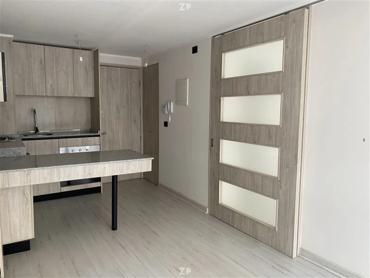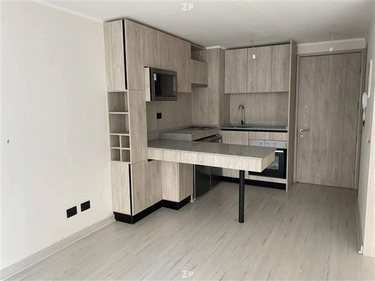 Cocina americana moderna, equipada con encimera, horno, campana, frigobar, freezer y microondas. Living de buen tamaño con salida a terraza. Closet con instalación para lavadora. Puerta corredera que separa living del dormitorio principal. Dormitorio amplio con terraza, walk in closet, baño completo.