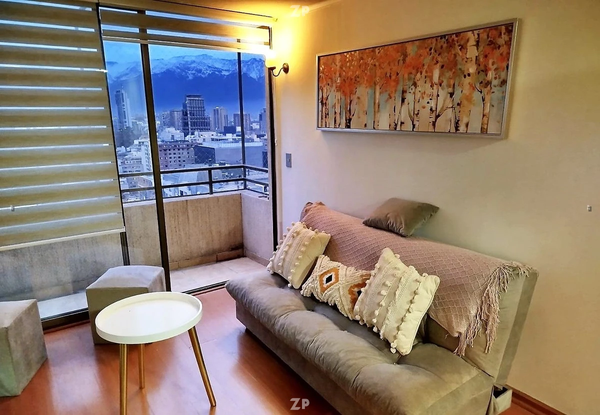 Departamento Amoblado de 1 dormitorio, 1 Baño, luminoso, está ubicado con cercanía al Barrio Bellas Artes, excelente vista al oriente de Stgo, cercano a las estaciones del Metro Bellas artes y Plaza de Armas amplios espacios comunes, piscina, salón de eventos, quincho, lavandería, excelente y tranquilo barrio muy cercano a Servicios Públicos, Servicios de Salud, Establecimientos Educacionales, Comercio, Principales Supermercados, Áreas verdes, cercano al Parque Forestal y Cerro Santa Lucia. Gran oferta Gastronómica y Cultural, Buena Conectividad a cualquier lugar de Santiago, por su cercanía a autopista.