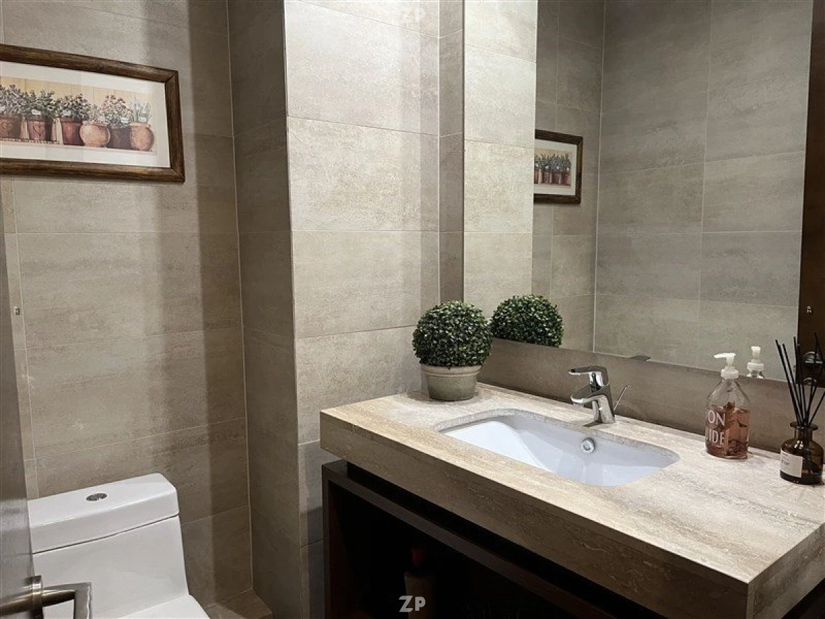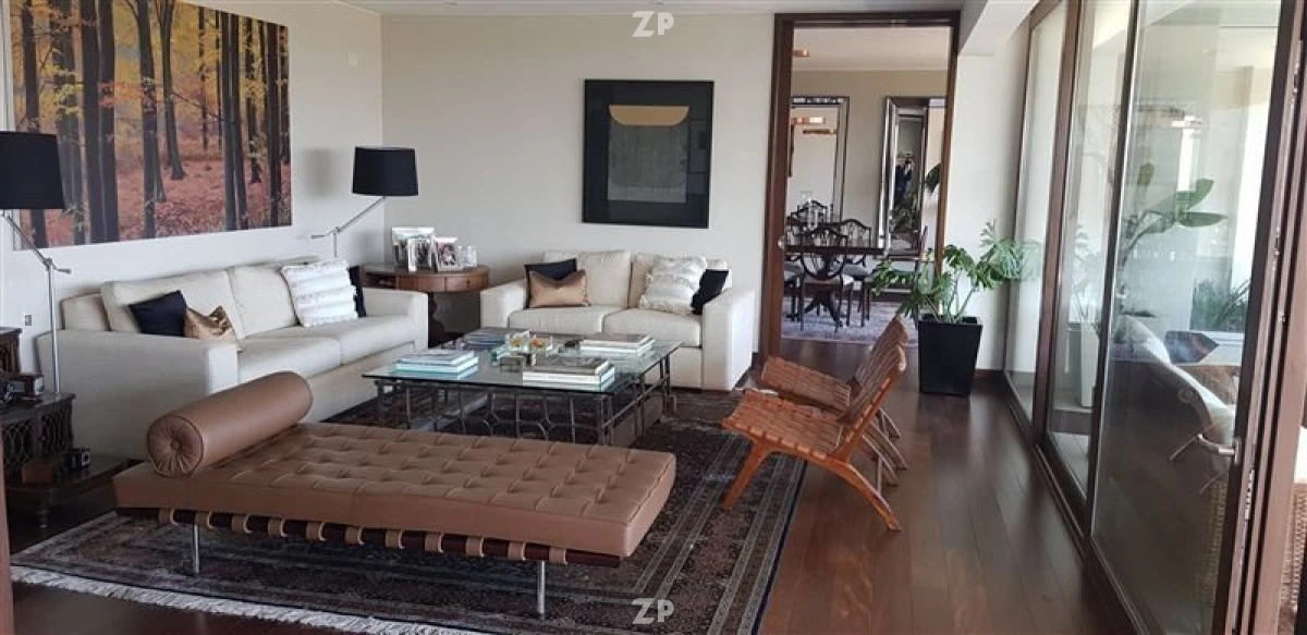 Amplio Hall de distribución, living y comedor separados. Gran terraza a lo largo de todo el living y comedor, con vista panorámica y toldos eléctricos. Moderna cocina con comedor de diario, logia y dormitorio de servicio.
