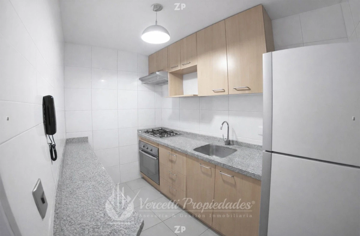 - Cocina independiente, completamente amoblada y equipada con cocina a gas, horno y campana eléctrica