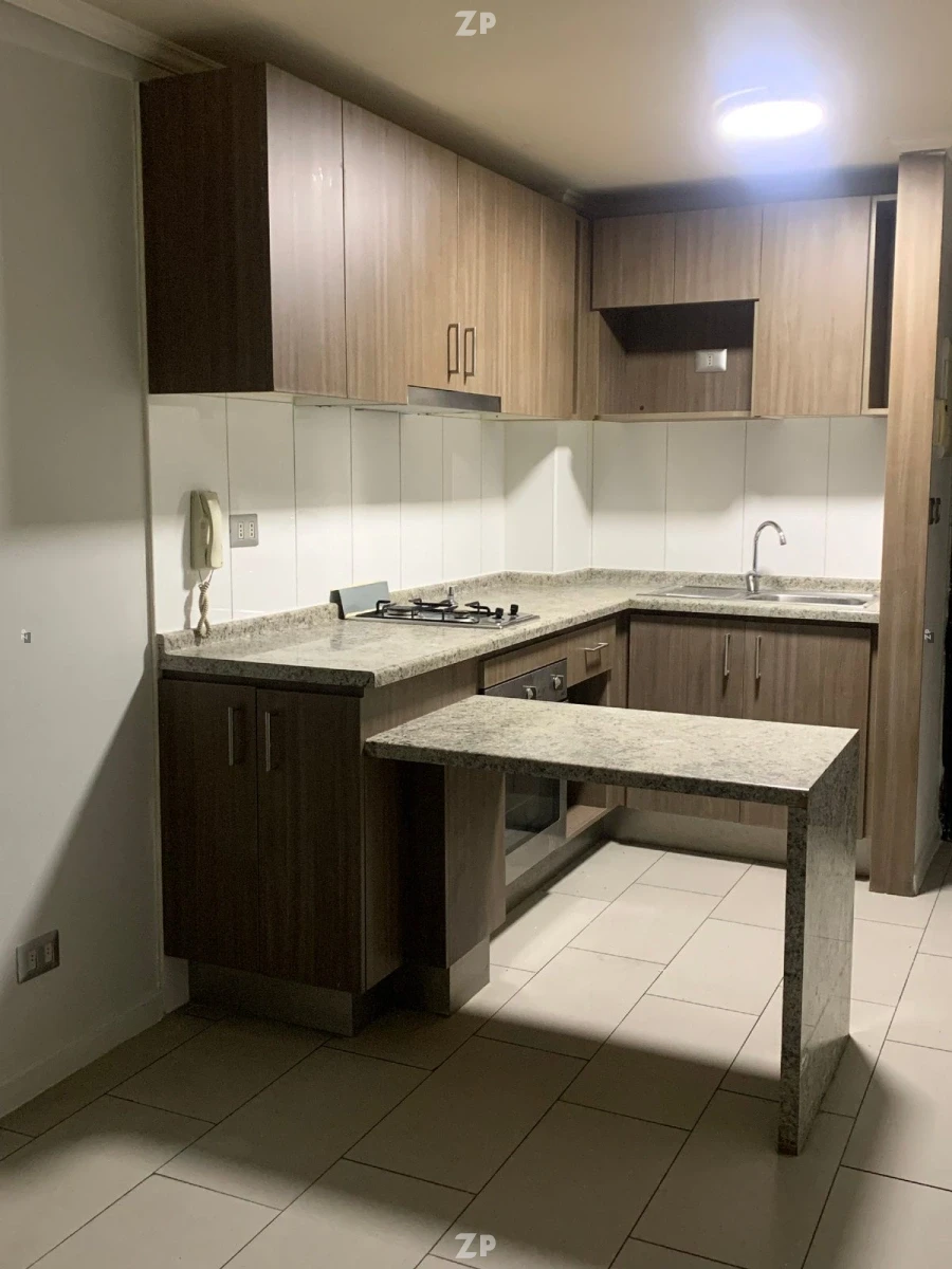 Consta de cocina americana amoblada y equipada, encimera a gas natural, horno y campana de cocina eléctrica, calefont. Un dormitorio en suit, con closet, baño completo, instalación para lavadora. Terraza, orientación Poniente.