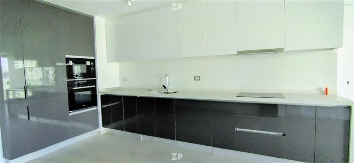 Posee acabados de alta calidad y se encuentra equipado con refrigerador, lavavajillas, lavadora, horno eléctrico y microondas integrados. Tiene encimera eléctrica y campana.