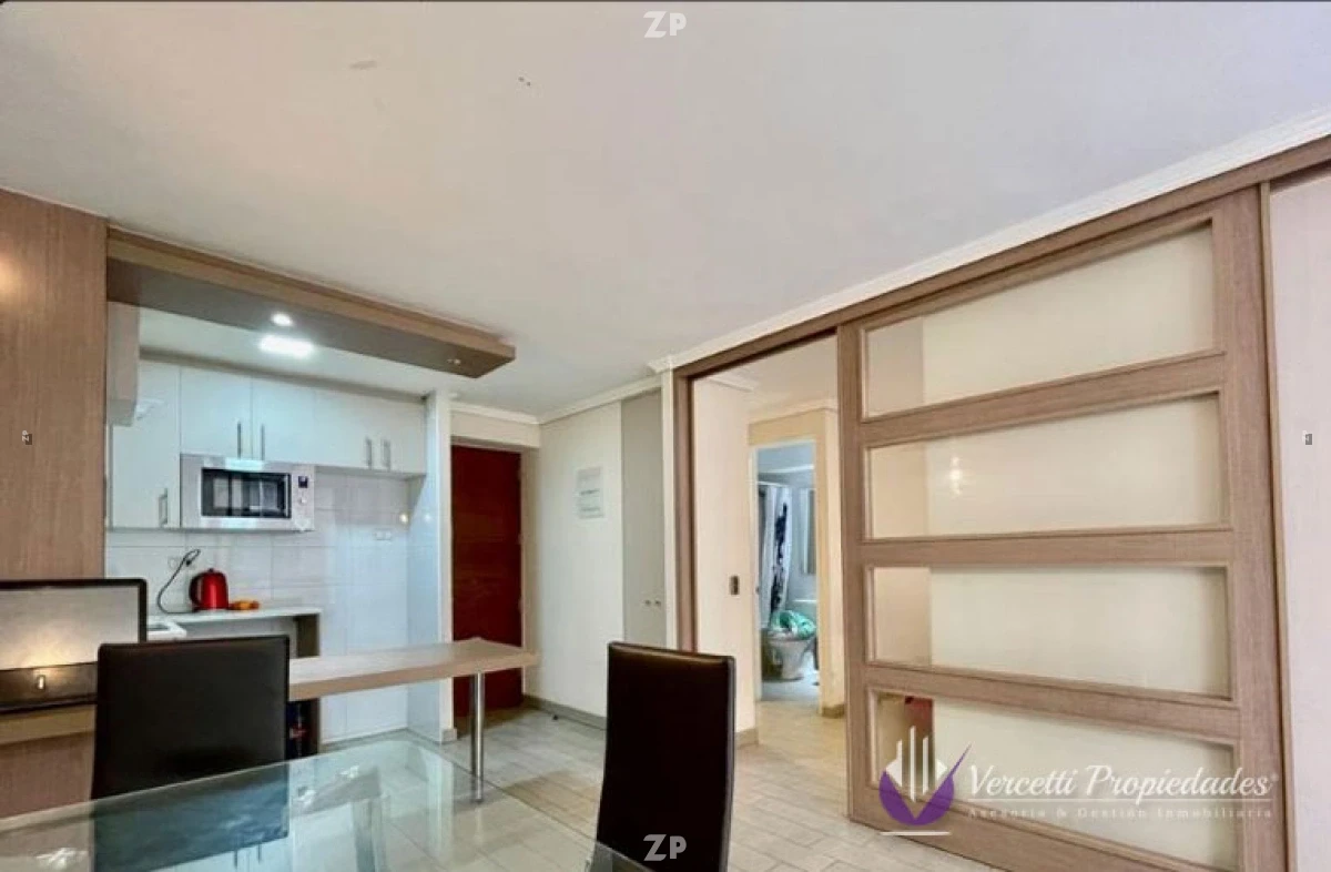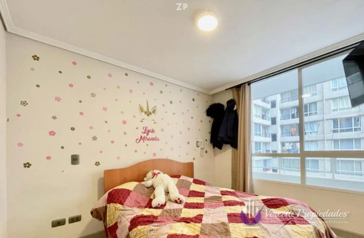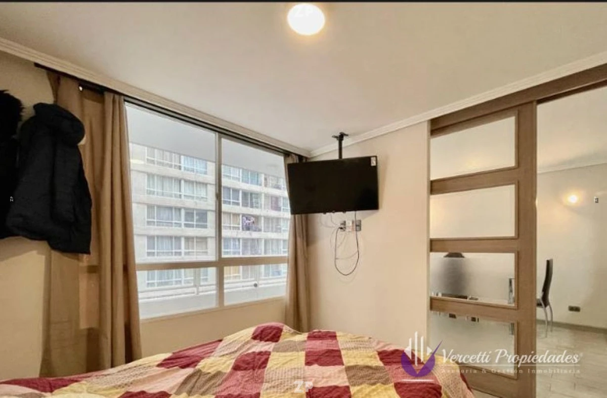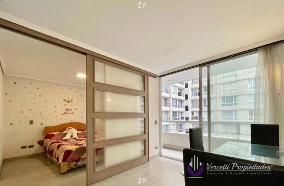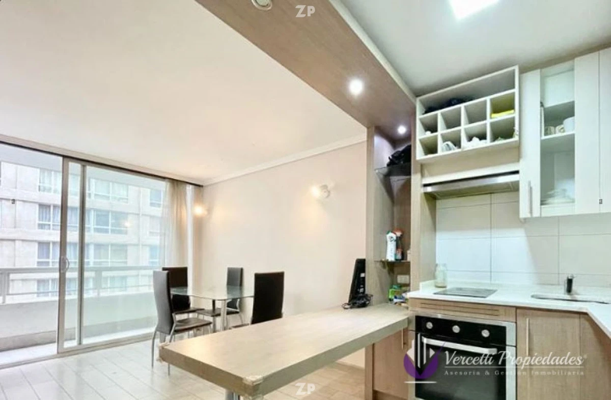 Acogedor departamento ubicado en piso 16. Cuenta con 1 amplio dormitorio con precioso separador de ambiente, walking closet y baño. Cocina amoblada y equipada con encimera y horno eléctrico, Living-comedor con salida a amplia terraza de 6m². Departamento con excelentes terminaciones.