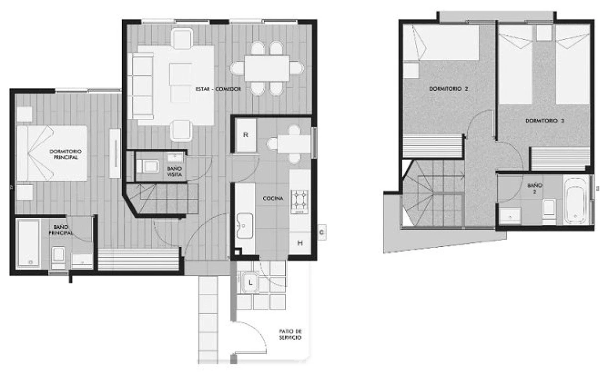 Interior: Primer piso; cocina completa con encimera, campana y horno empotrado. Living comedor y baño de visitas. Habitación matrimonial en suite, baño completo con shower y columna de ducha. Con salida a terraza privada. Segundo piso; 2 dormitorios con closet y gran baño completo.