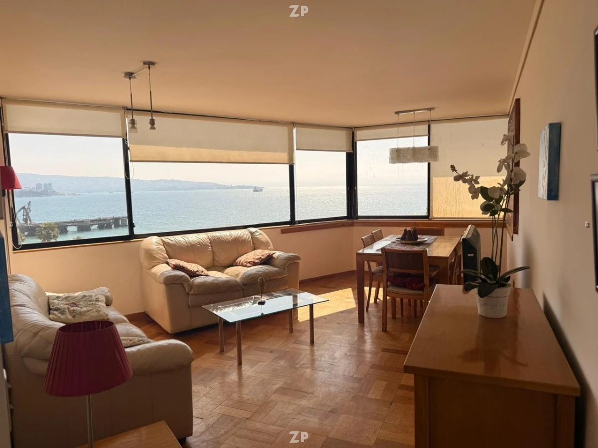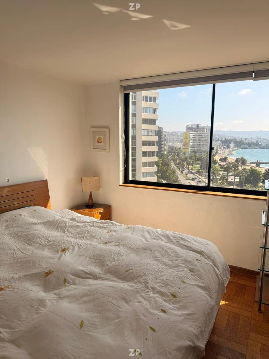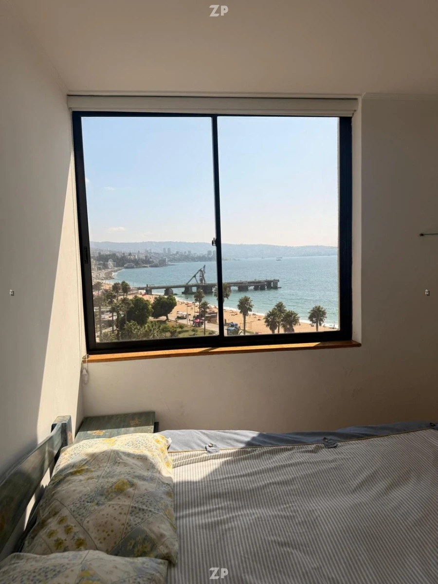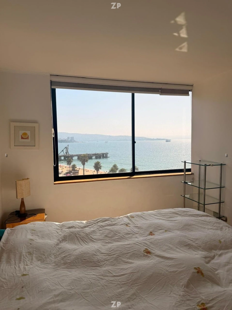 La cocina está equipada y se integra al diseño del departamento, facilitando las tareas diarias. Los dormitorios presentan ventanales al exterior, permitiendo disfrutar de la vista al mar desde diferentes puntos del departamento. Además, el inmueble incluye una bodega, proporcionando espacio adicional de almacenamiento.