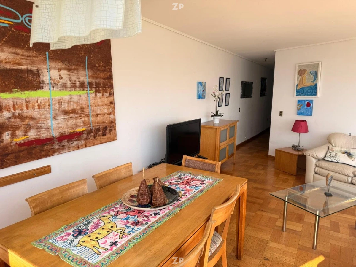 Este departamento destaca por su ubicación frente al mar, ofreciendo vistas panorámicas a la playa y al océano desde sus principales ambientes. Con una superficie total y útil de 80 m², el espacio está distribuido en tres dormitorios y dos baños, lo que permite una organización funcional y cómoda para sus residentes. El living y comedor cuentan con ventanales que permiten apreciar el entorno costero, generando una atmósfera agradable y conectada con el exterior.