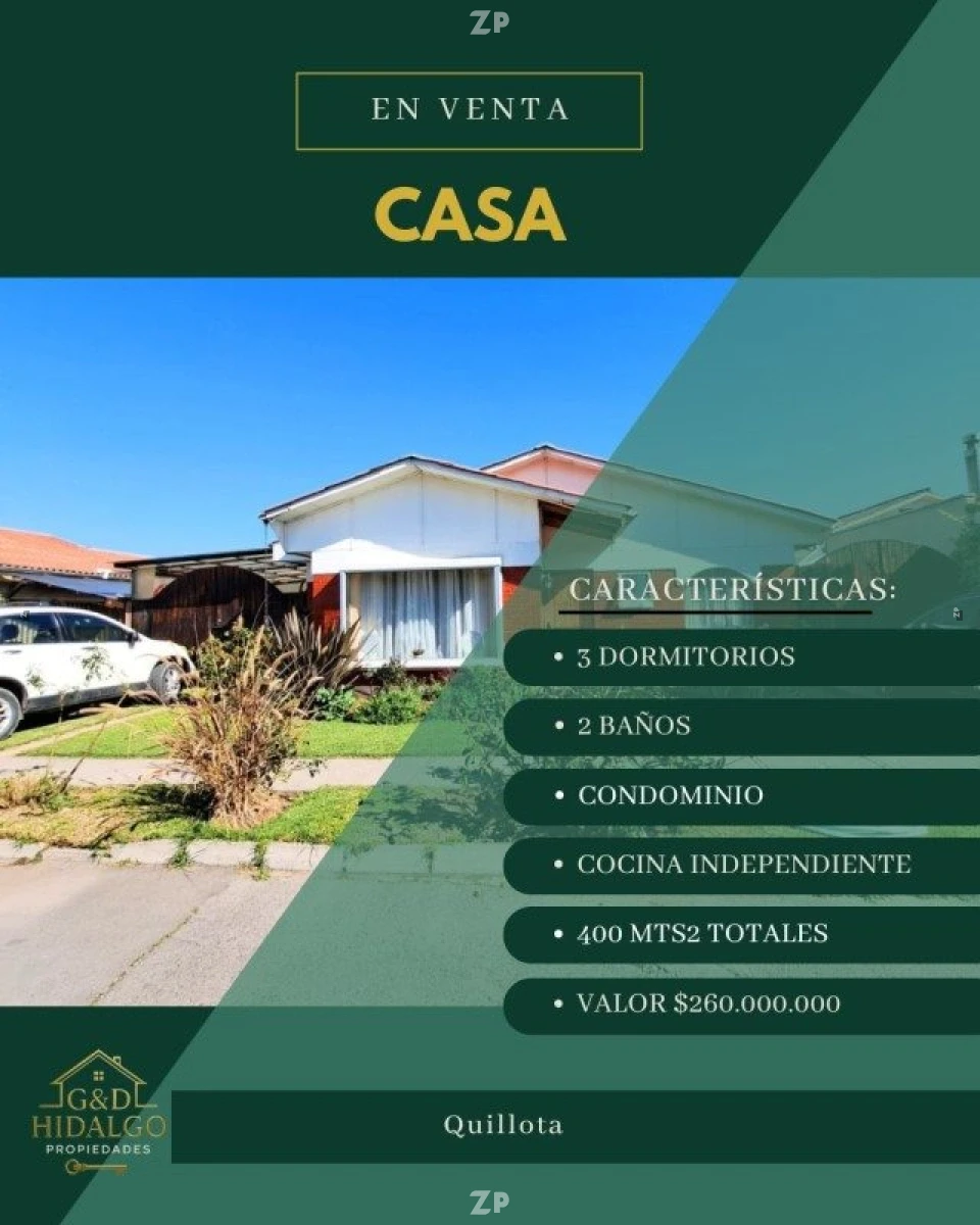 Amplio terreno de 400 m ideal para aquellos que buscan una propiedad con gran potencial para vivir, ampliar o desarrollar proyectos. Ubicada en un condominio cerrado en Quillota, esta propiedad destaca por su generoso terreno, que te permitirá disfrutar de un amplio patio trasero con árboles frutales y ornamentales.
