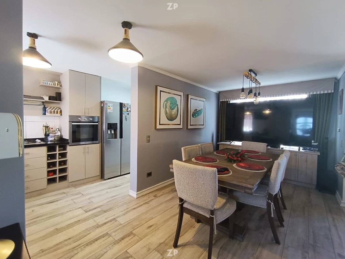 Amplio espacio de concepto abierto: living, comedor y cocina moderna completamente integrados, con excelente iluminación natural y salida al patio